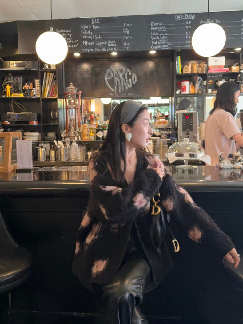 秋のモード系花柄が印象的なモヘア風カーディガン