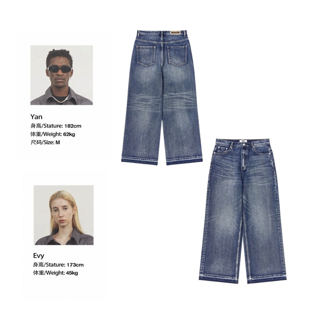 ウォッシュ加工による自然な色落ちが、こなれた印象を引き立てます。