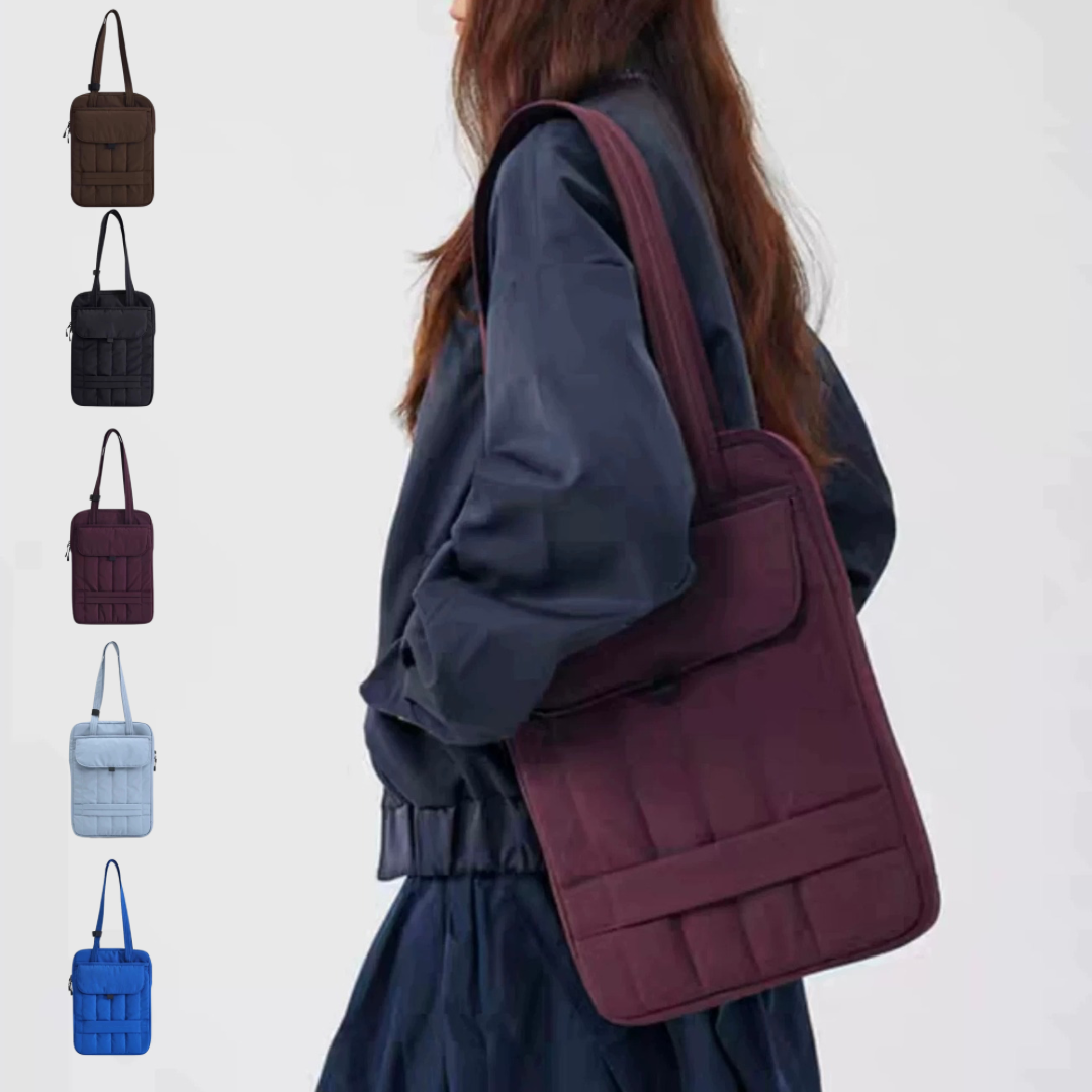 中綿入りのキルティング素材を使用した、軽やかな印象のトートバッグ。
