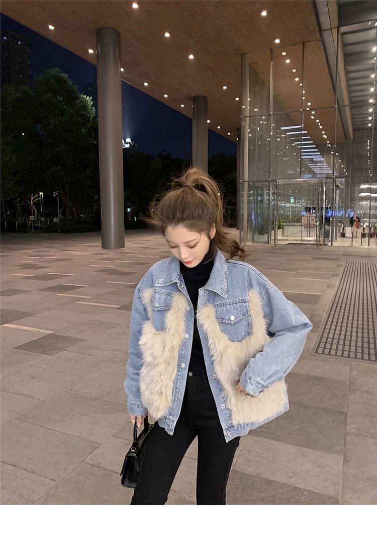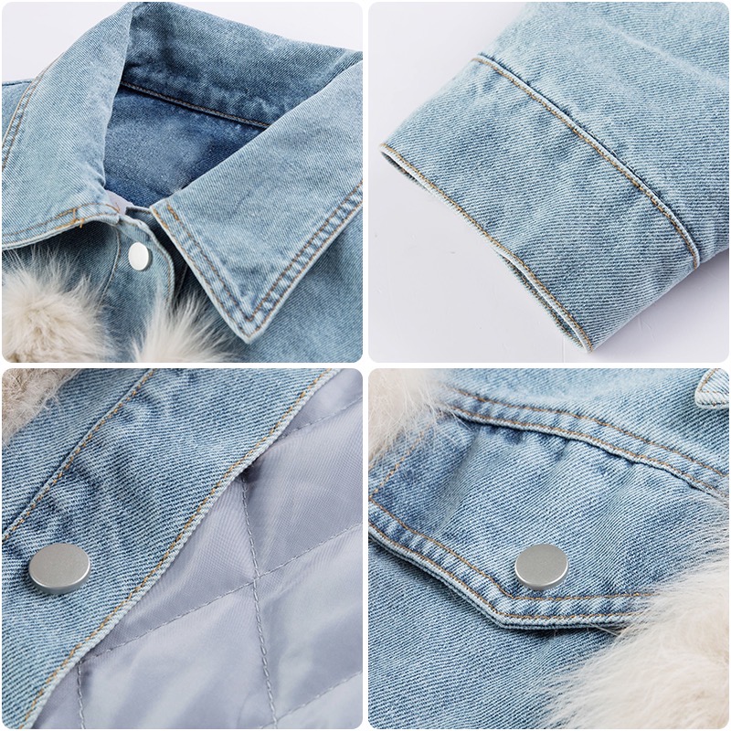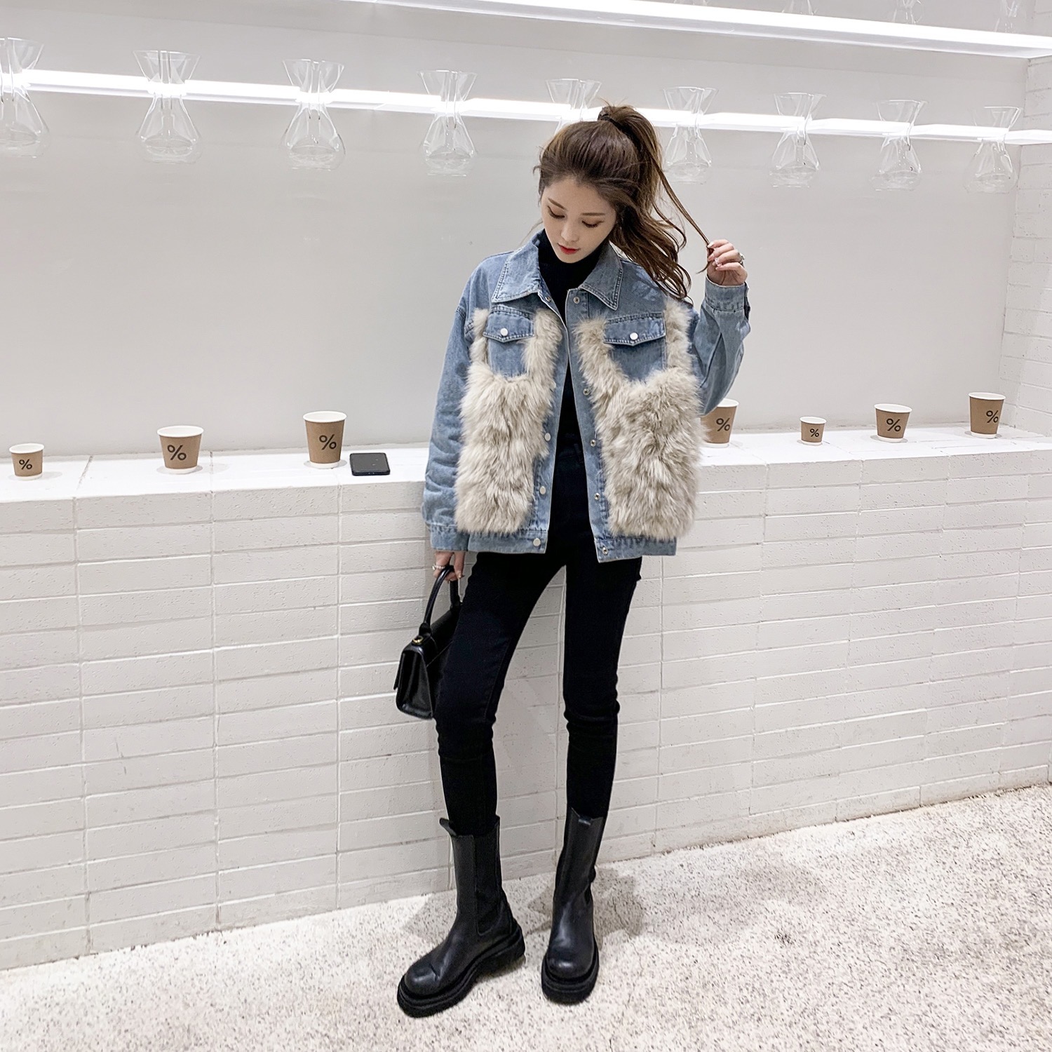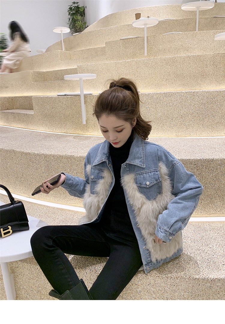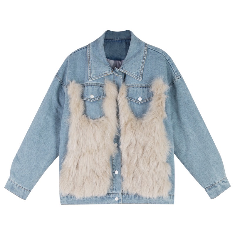 • 異素材ミックス: デニムとフェイクファーが絶妙に融合し、個性的なスタイルを演出。