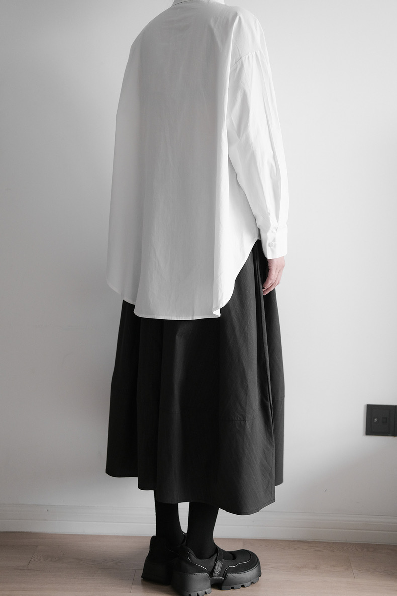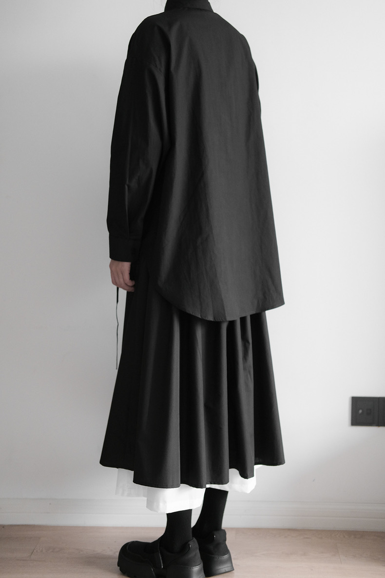 前を閉じればミニマルなシャツスタイル、開ければ羽織としても楽しめる多機能設計。