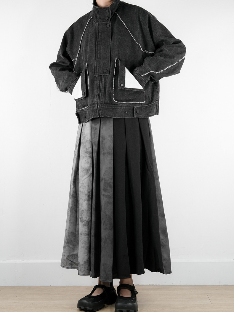 • シックなモノトーンコーデに取り入れ、デニムジャケットを主役にしたスタイル。