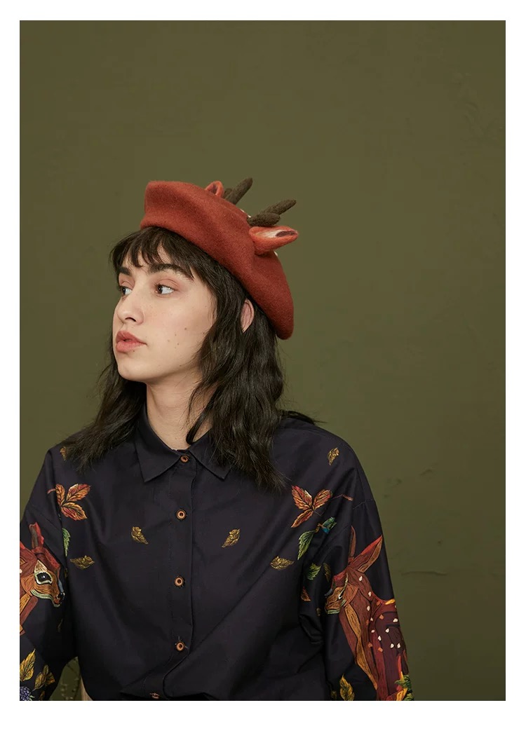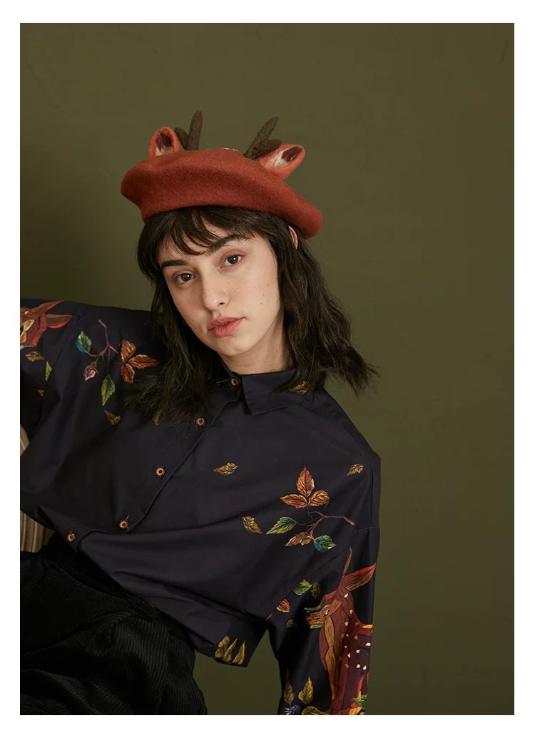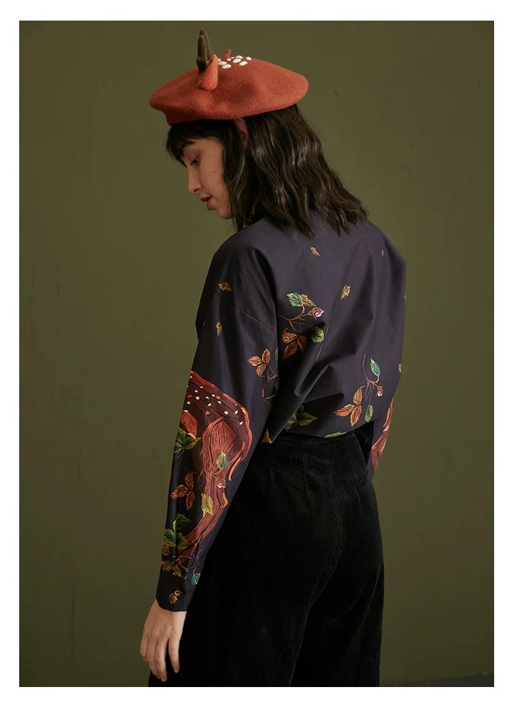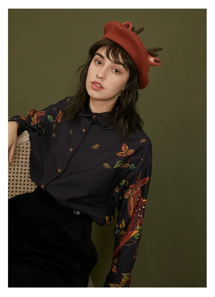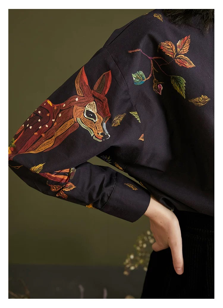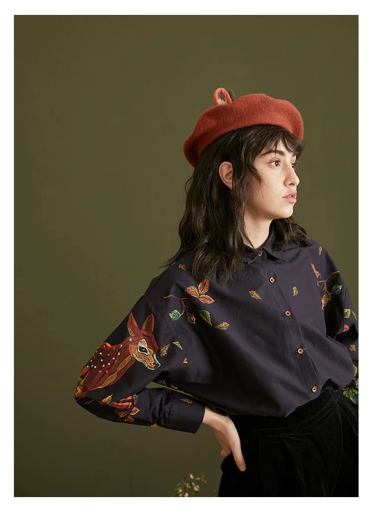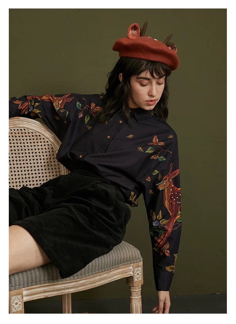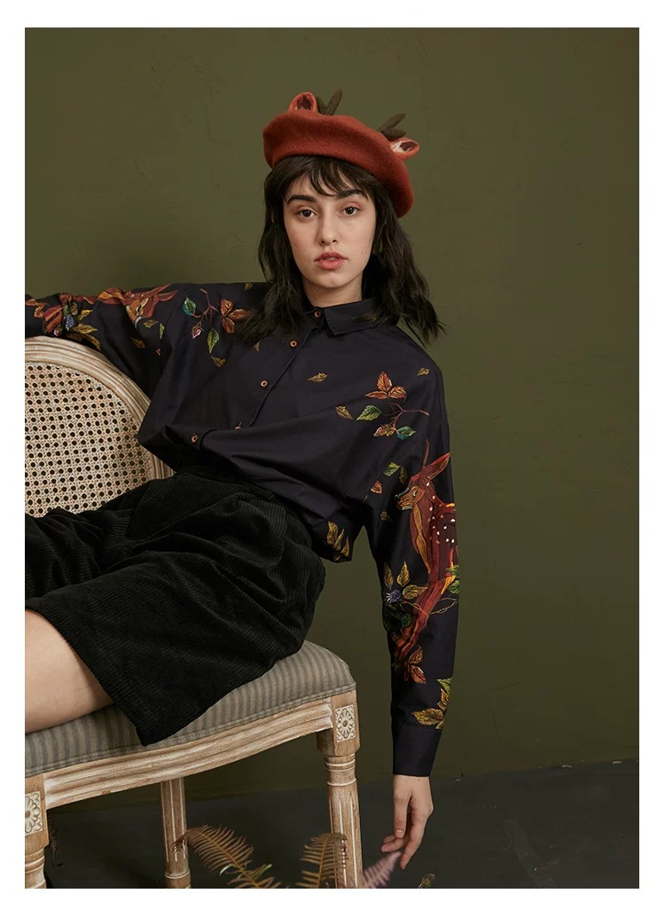 愛らしい刺繍と上品なフリルが目を引くヴィンテージ感たっぷりのデザインシャツ。