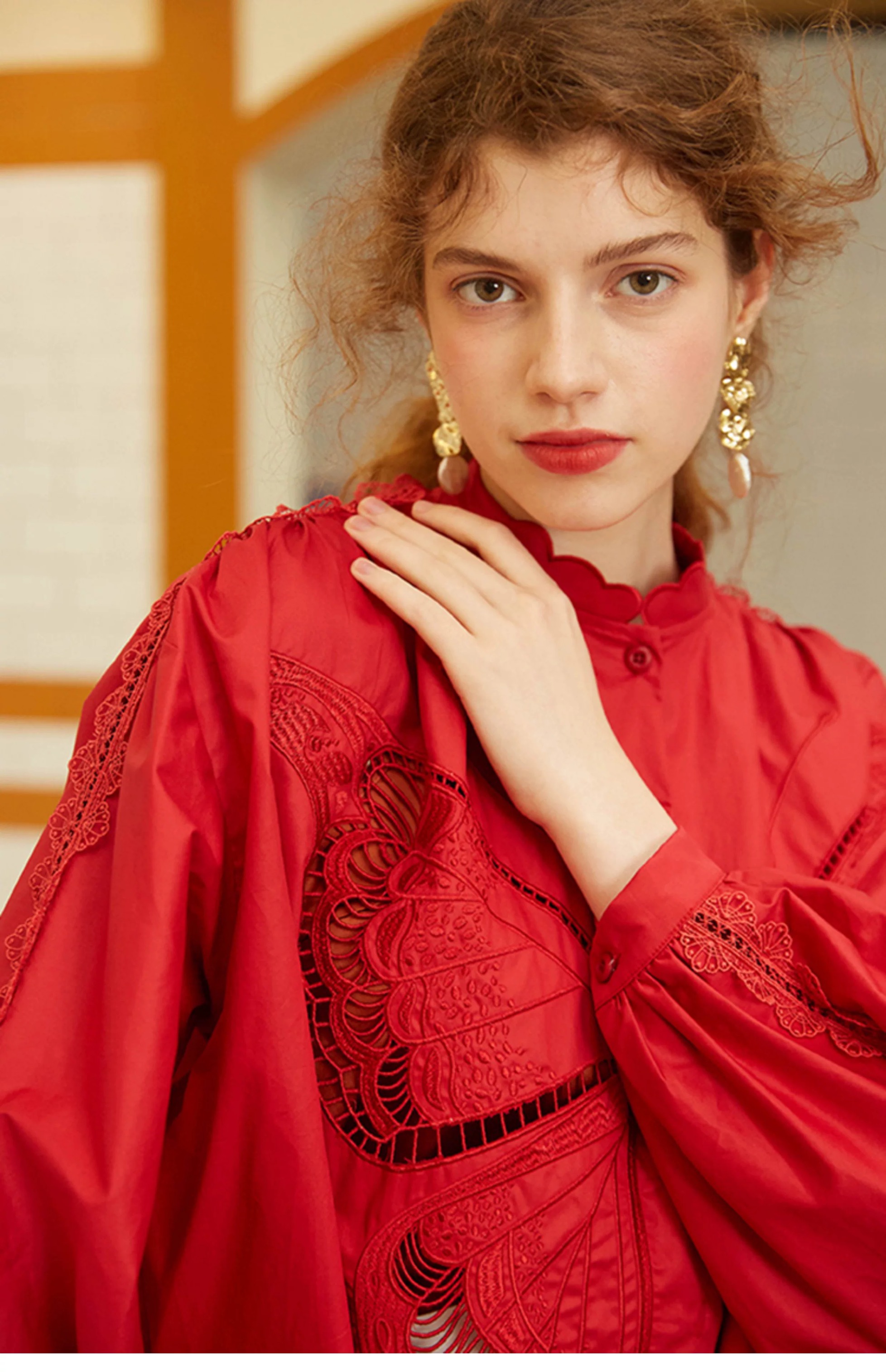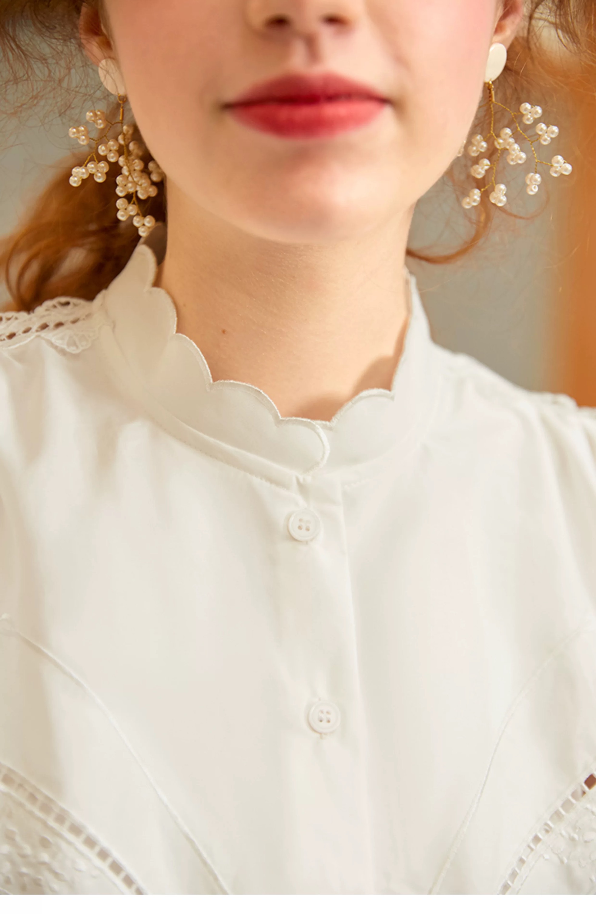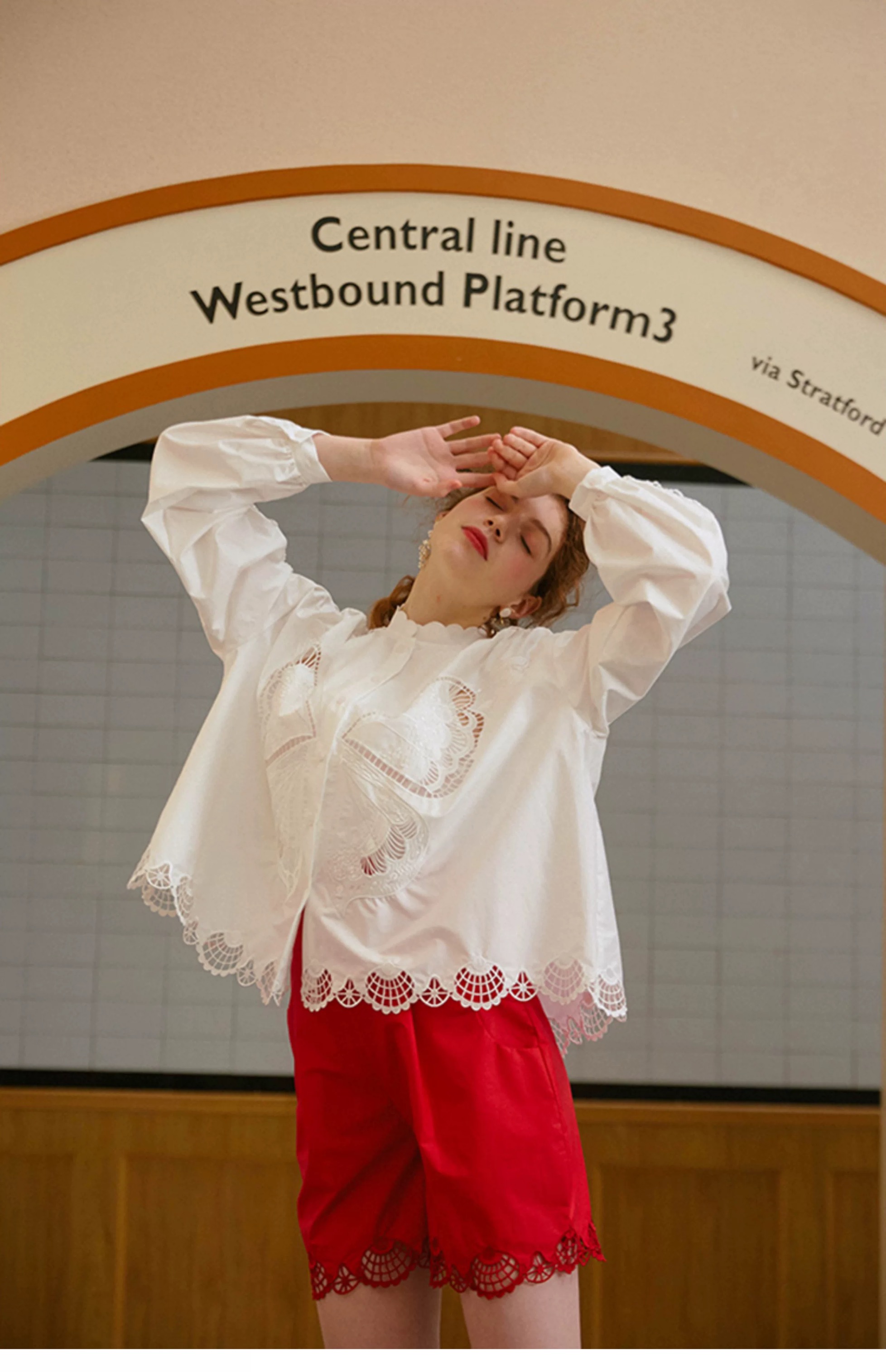 • 袖口や裾に施されたカットワークが、エレガントな印象を与えます。