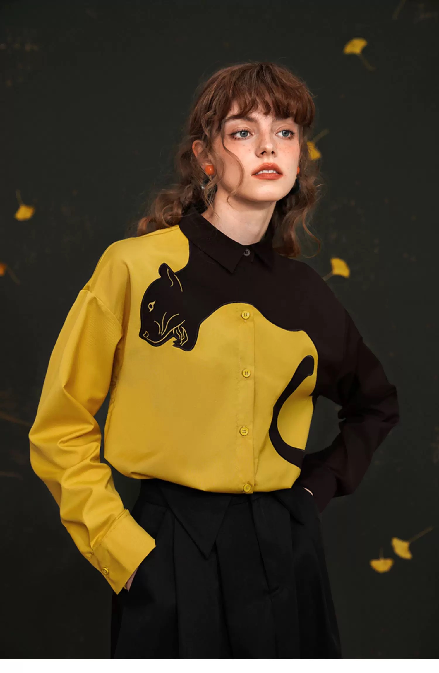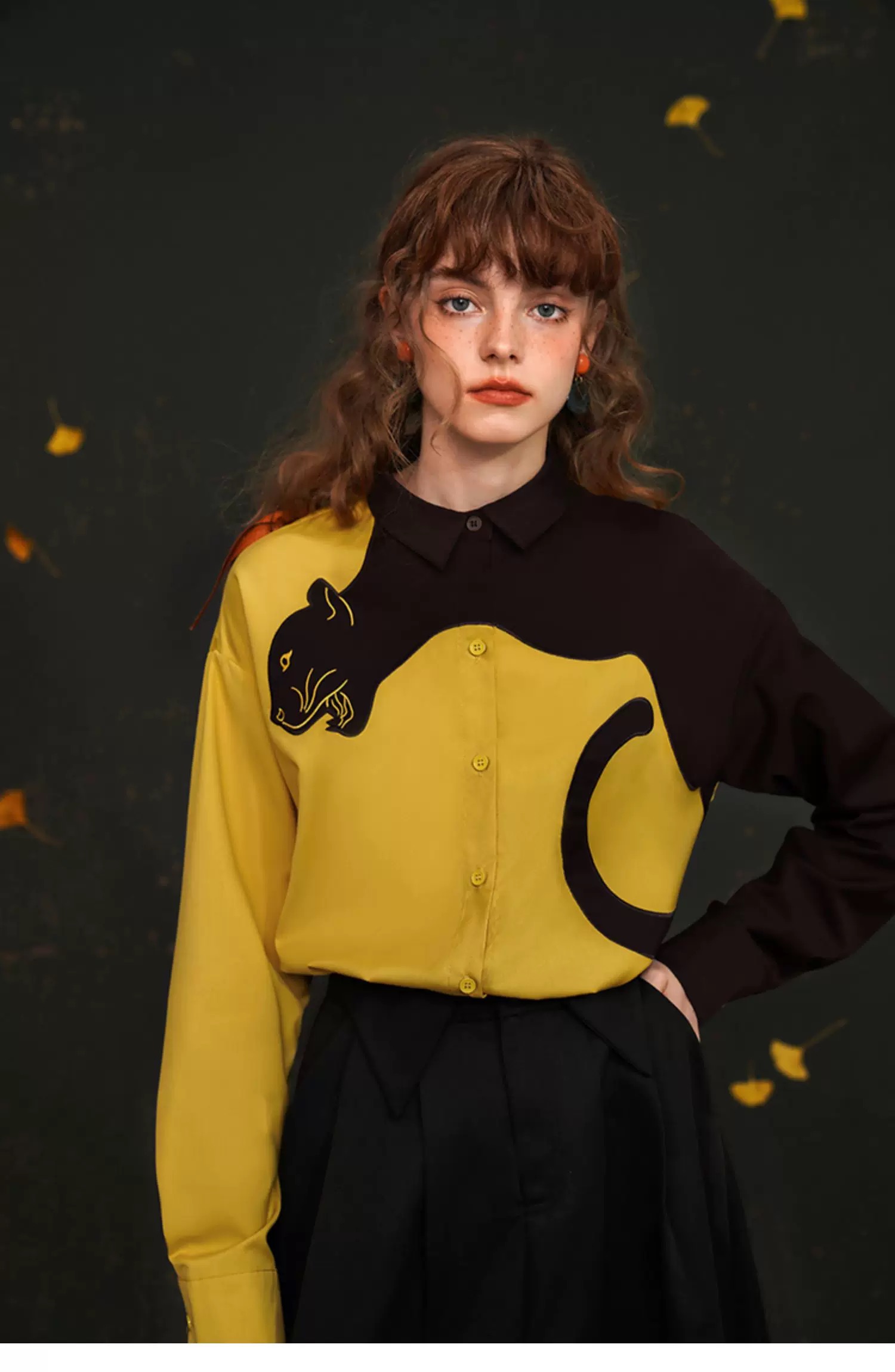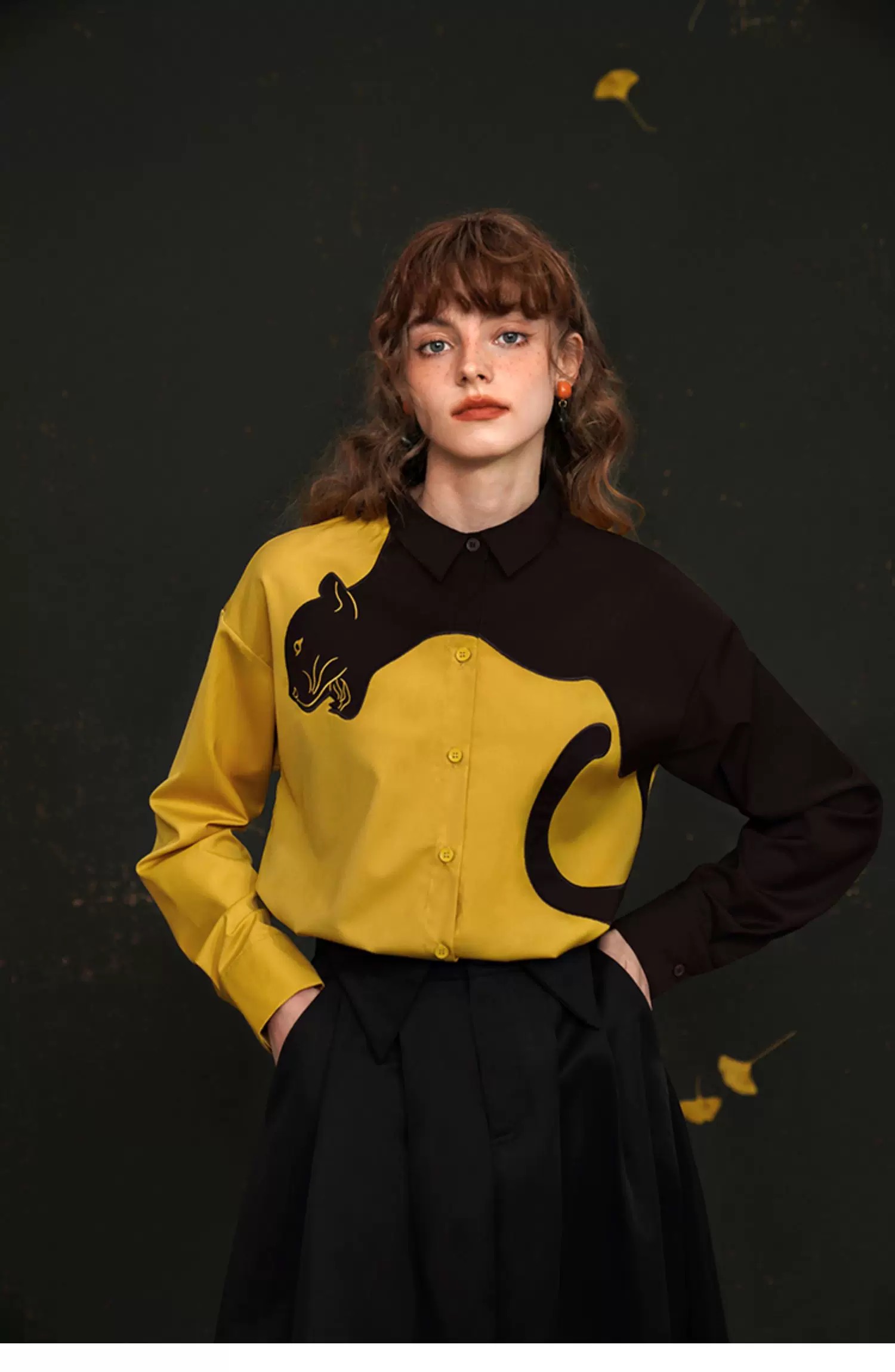 インパクト抜群のパンサー柄デザインが魅力のモードシャツです。