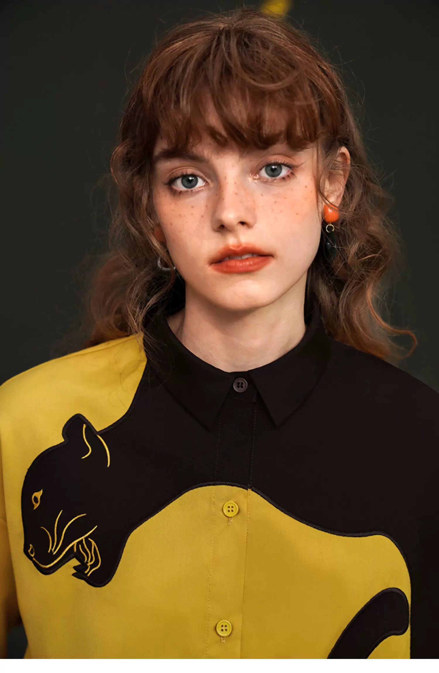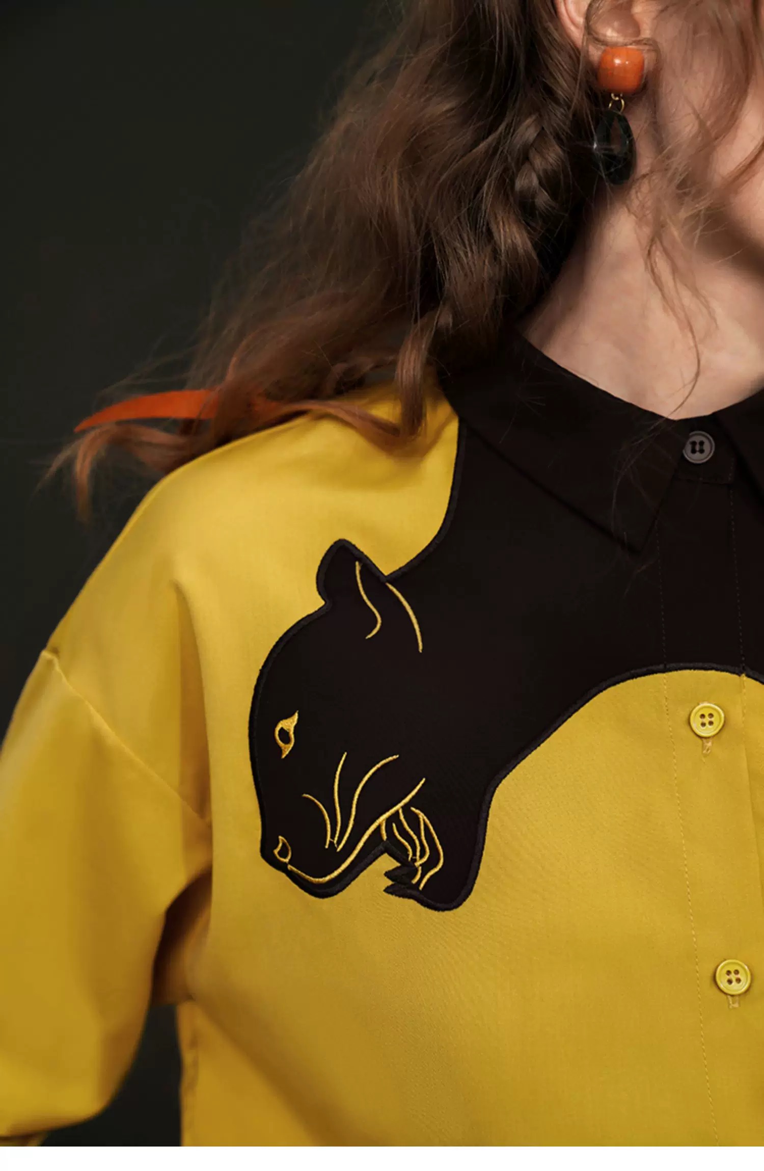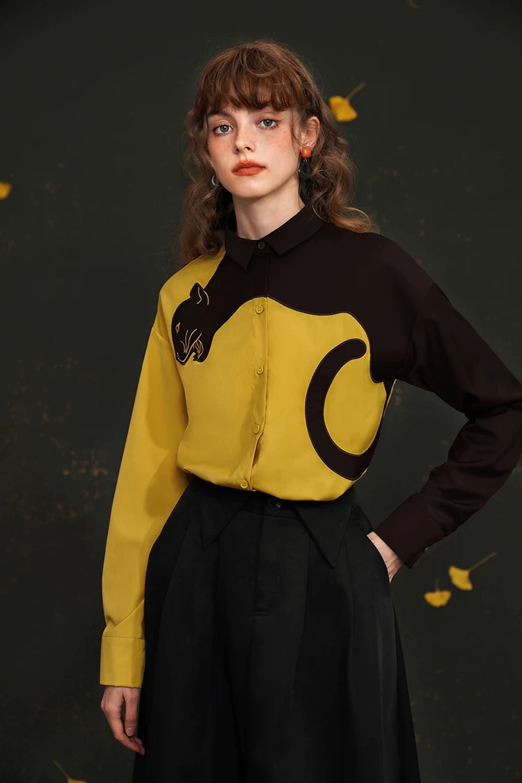 インパクト抜群のパンサー柄デザインが魅力のモードシャツです。
